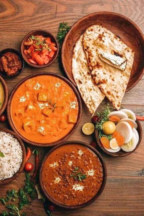 印度菜可分为南北两大菜系,北印度菜的口味以微辣为主,以咖喱为特色,菜色清爽,更受欢迎,所以世界各国的印度菜多是北印度菜。